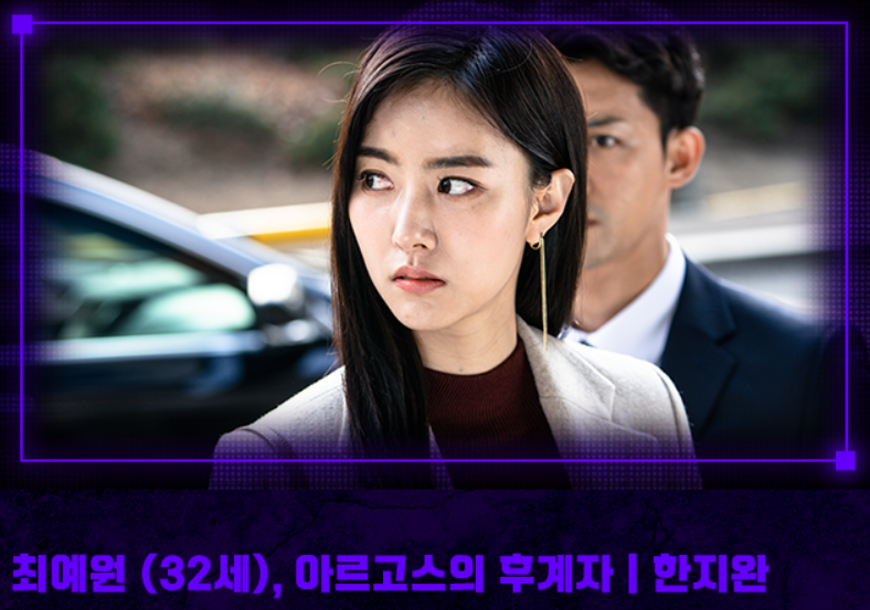 최예원 역할 (한지완) : 아르고스 고용덕 회장의 애인이자 고용덕 회장 사망 후 모든 재산을 상속받은 공식 후계자입니다.