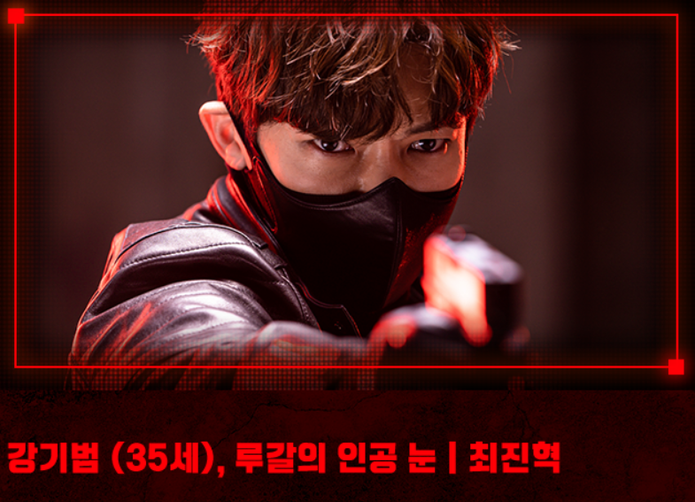 강기범 역할 (최진혁) : 촉망받던 전직 강력계 형사. 현재 루갈의 인공 눈입니다.