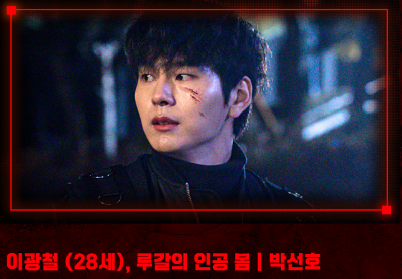 이광철 역할 (박선호) : 경찰대를 중퇴하였고 인공 피부와 장기를 이식받고 루갈에 합류하게 됩니다.
