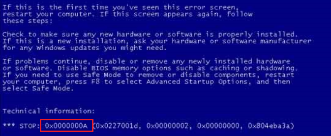 블루스크린 0x0000000A 오류가 나타나는 경우는 총 6가지입니다.