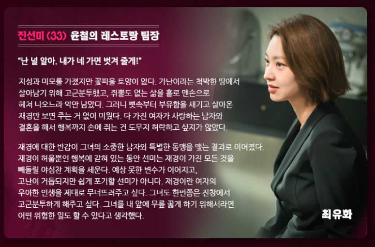 심재경을 연기하는 김정은의 누구나 부러워하는 금수저 프리패스 인생 이야기를 어떤식으로 연기를 보여줄지 너무나 기대가 됩니다.