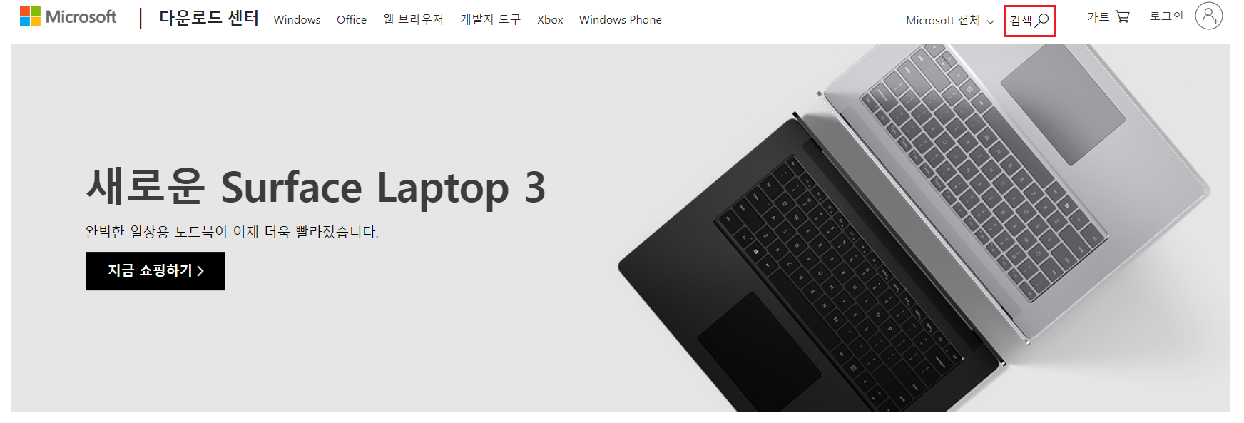 2. 마이크로소프트 다운로드 센터 사이트에서 검색창을 확인하세요
