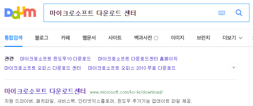 1. 검색창에서 마이크로소프트 다운로드 센터를 검색해주세요
