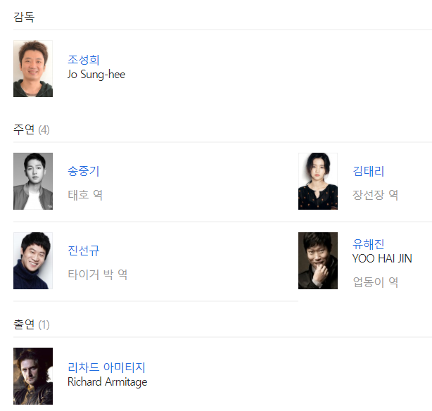 승리호는 태호 역할에 송중기, 장선장 역할에 김태리, 타이거박 역할에 진선규, 업동이 역할에 유해진이 출연을 합니다.